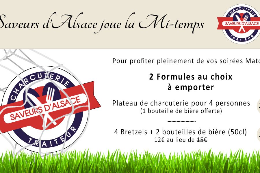 Pour profiter pleinement de vos soirées Matchs 2 formules au choix à emporter Plateau de charcuterie pour 4 personnes à 24€ (1 bouteille de bière offerte) ————————– 4 Bretzels + 2 bouteilles de bière (50cl) 12€ au lieu de 15€ Belle Coupe du Monde à toutes et à tous ! L’abus d’alcool est dangereux pour la santé, à boire et à consommer avec modération.